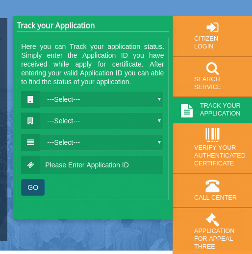 - Citizens can verify or track the status of their application by entering the application ID in the Application Tracking module.