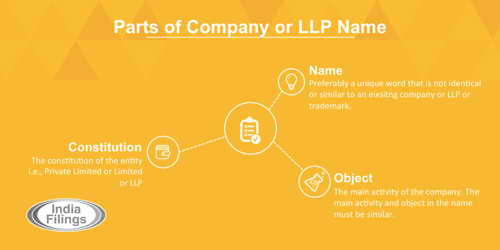 Every Company Name (1, One Person Company, Limited Company) must have a prefix, object and constitution. The prefix in a company name is mostly the name of the business or the brand of the business. The object in a company name describes the main activity of the company. The constitution could be private limited or OPC Private Limited or Limited Company. For instance - in the name Acme Motors Private Limited, Acme is the name, Motors is the object and Private Limited is the constitution. If the name doesn't correspond to the above pattern, it could be rejected.