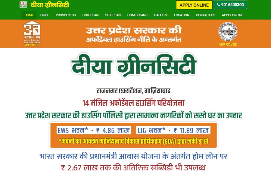 The Government of Uttar Pradesh has initiated the Diya Green City scheme 2018 under the Affordable Housing Policy for home seekers of the state. Under this housing scheme, the State Government is offering a total number of 846 residential flats of EWS, LIG, MIGĀ and HIG of 2/3/4 rooms. The area of these flats located in Diya Green City Raj Nagar Extension, Ghaziabad. The online application process of the scheme has been started from 15 July 2018.