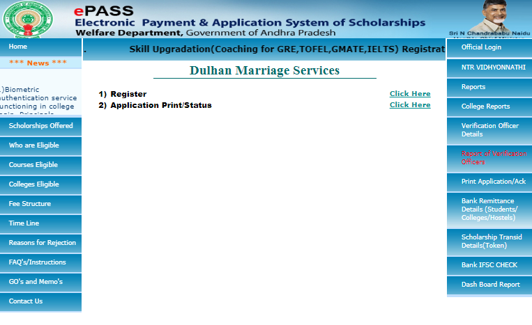 Step 1: The applicant has to visit the ePass website of Andhra Pradesh Government. Step 2: Click on "Dulhan" icon which is visible on the home page of the portal.