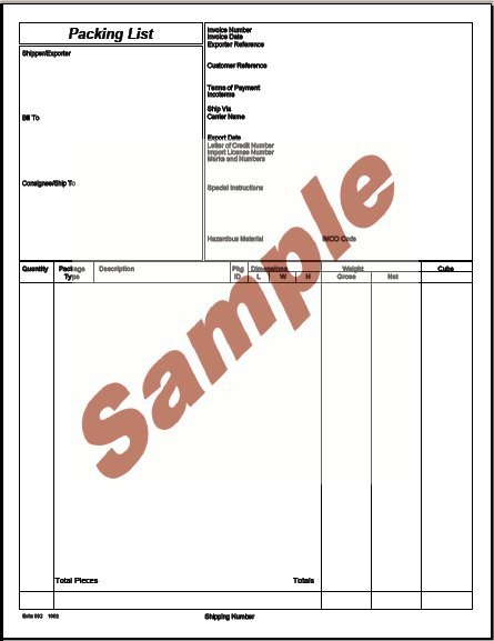 The packing list contains detailed information about the shipped goods, quantity, weight, and packing specifications. The packing list must contain a product description and details regarding the shipping marks.