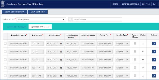 - It is mandatory to take a similar effect on all rate wise details of an invoice. Partial or different action for an invoice is not allowed.