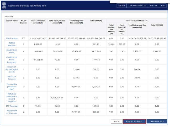 - The downloaded data form GST portal can be exported using the Export to Excel button provided in the summary page of returns offline tool.