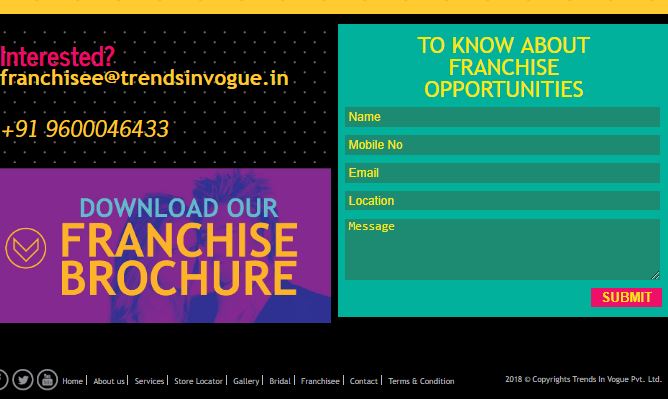 The interested party may take their interest forward by visiting the official website of the establishment and submitting the required details in the space provided at the bottom of the page. The details to be offered include the name of the applicant, his/her mobile number, e-mail address, state of residence, current city, the affordable range of investment, and other details (optional). Post submission of these particulars, the entity will contact the applicant for further proceedings.