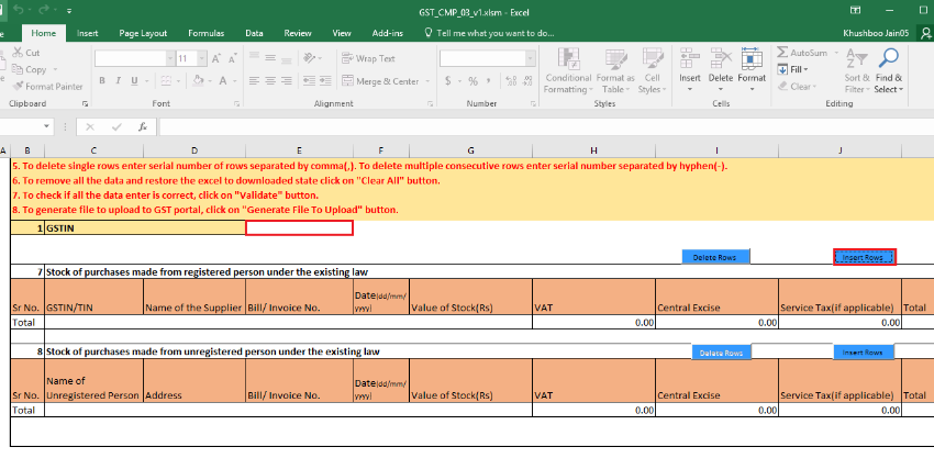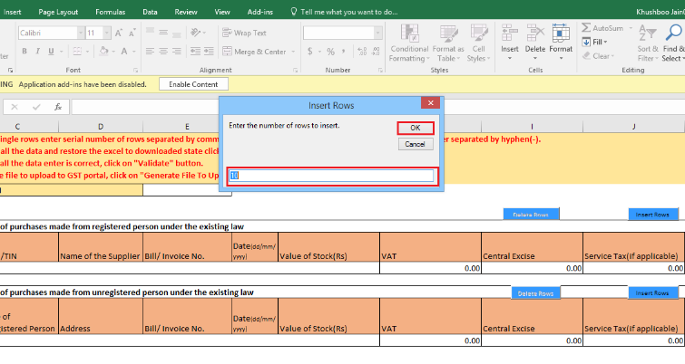 Step 10: Create news rows to enter the details and now click on the âInsert Rowsâ button to insert the row in the excel sheet.