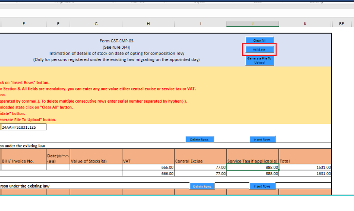 Step 13: Once all the stock details are entered in the sheet, click on the Validate button.