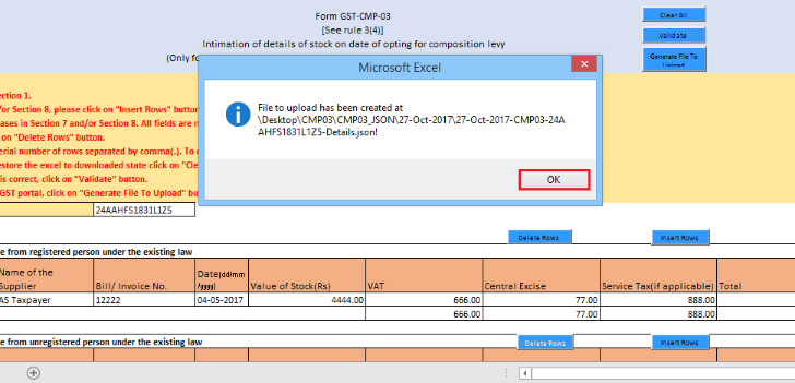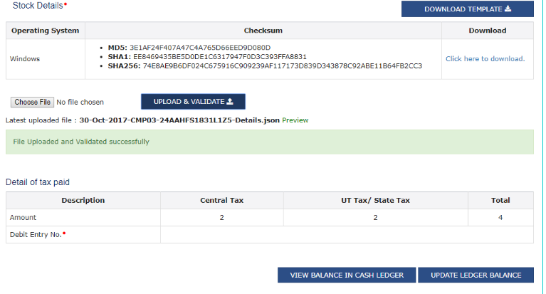 Step 16: Now click on the âGenerate File to Uploadâ button to create the JSON file to upload on the portal.