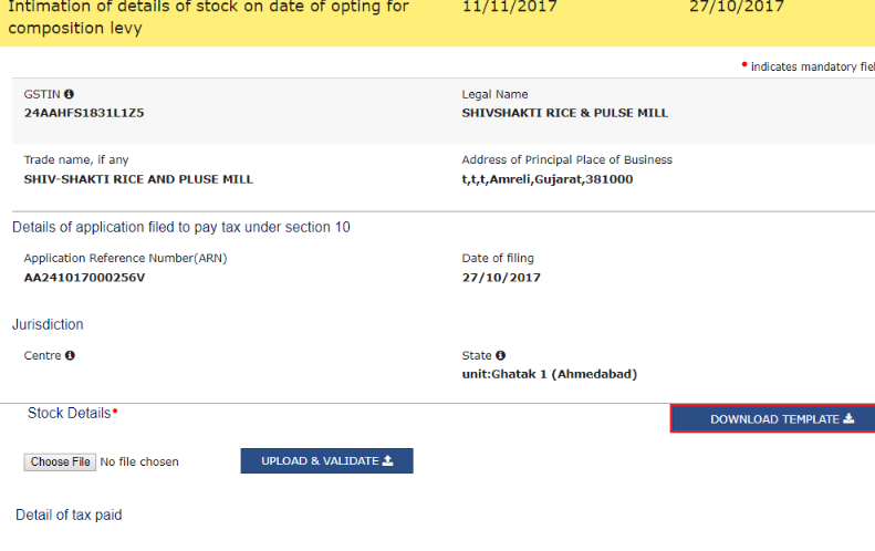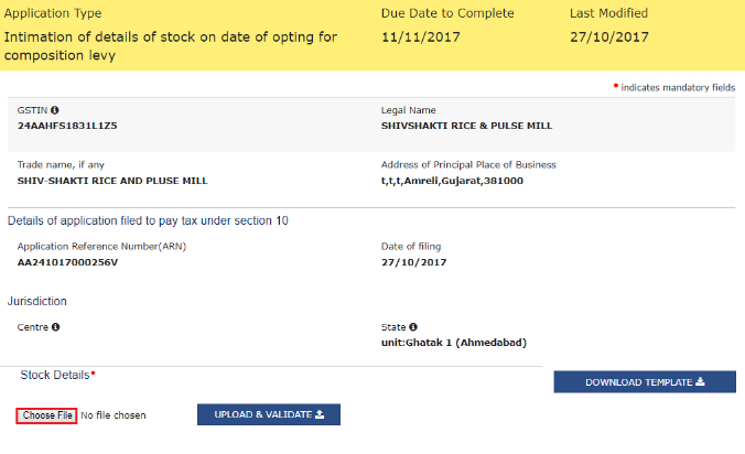 Step 10 - Intimation of Stock Details for Opting Composition Levy