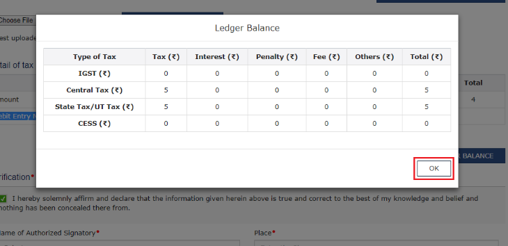 Step 27: If there is a sufficient balance in the Electronic Cash Ledger, then proceed forward and click the Update Ledger Balance button to update the ledger balance sheet.