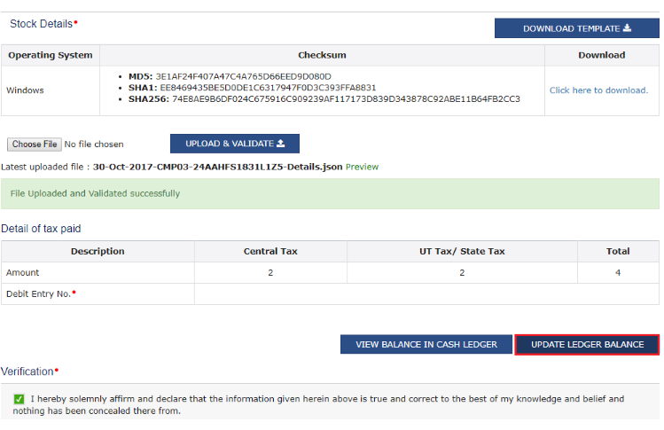 Step 5: Click on the âdownload templateâ button to download the template to fill the stock details and also check in the verification box.