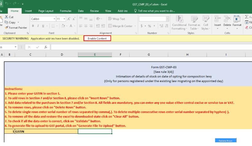 Step 8: Click on the âEnable Contentâ button to edit in the excel sheet.