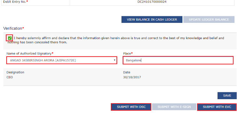 Step 34: Click on the Submit with DSC or Submit with EVC button.