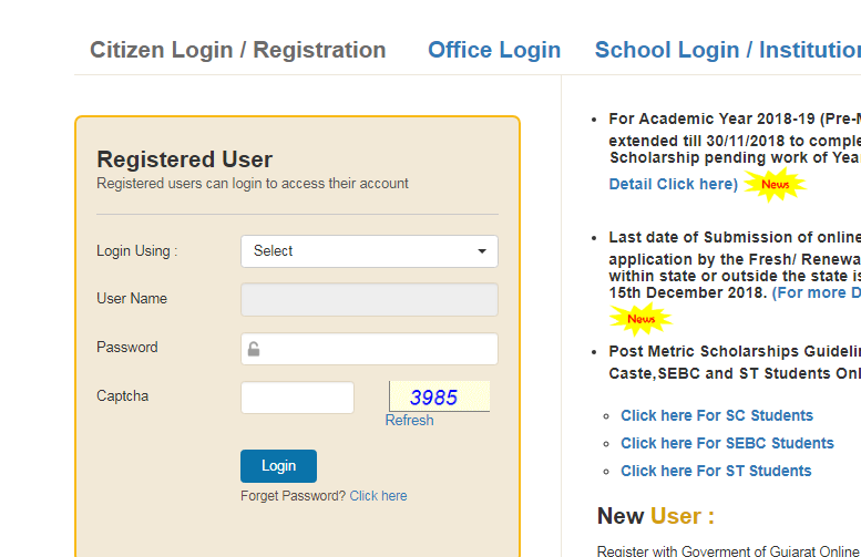 Step 2: The applicant must be registered with the portal to further the application process. Hence, if a user is new to the portal, he/she has to complete the registration with the Digital Gujarat official portal.