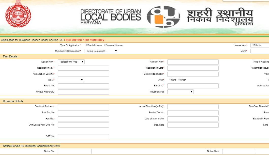 Haryana Trade License - Step 1