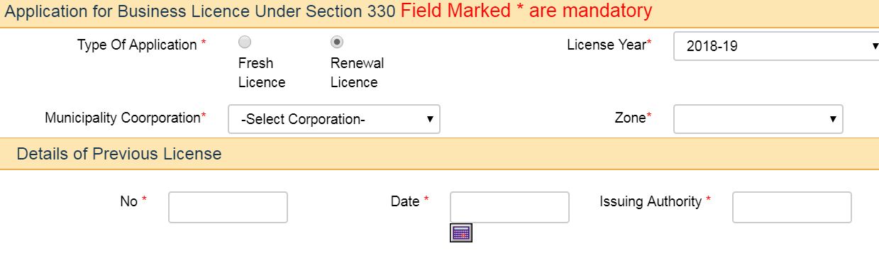 Step 3: The application form of Trade/ Business License will be displayed as shown below: