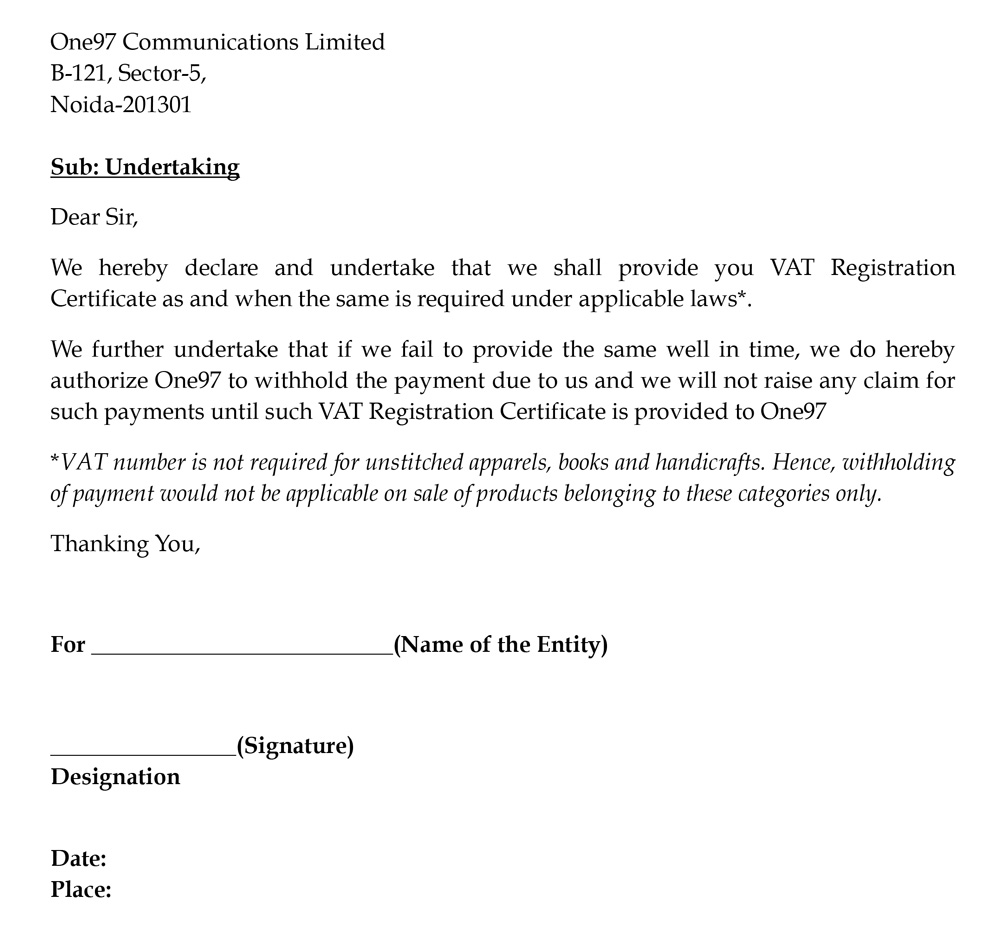 - In case VAT registration is not available, then the seller must submit a Paytm VAT registration undertaking.