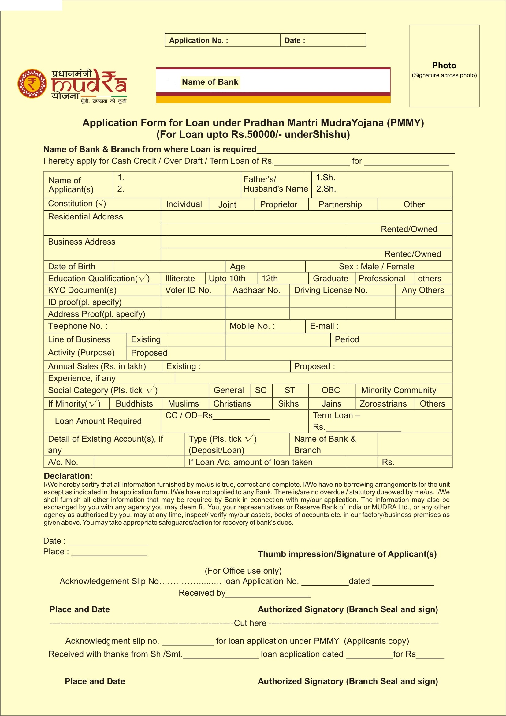 Sample MUDRA Loan Application Form