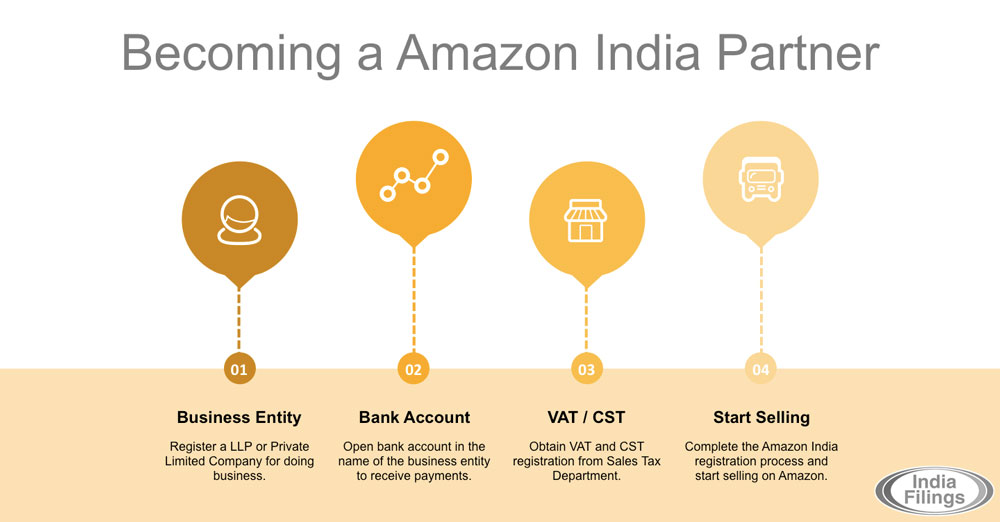 Upon enclosing the above information to Amazon India and complete the mandatory Amazon Partner Quiz so that you can begin selling on Amazon India. Detailed information relating to the listing of products and management of listings is available through Amazon India Seller dashboard. If you would like to register a company for selling on Amazon India or would like to know more information, visit IndiaFilings.com.