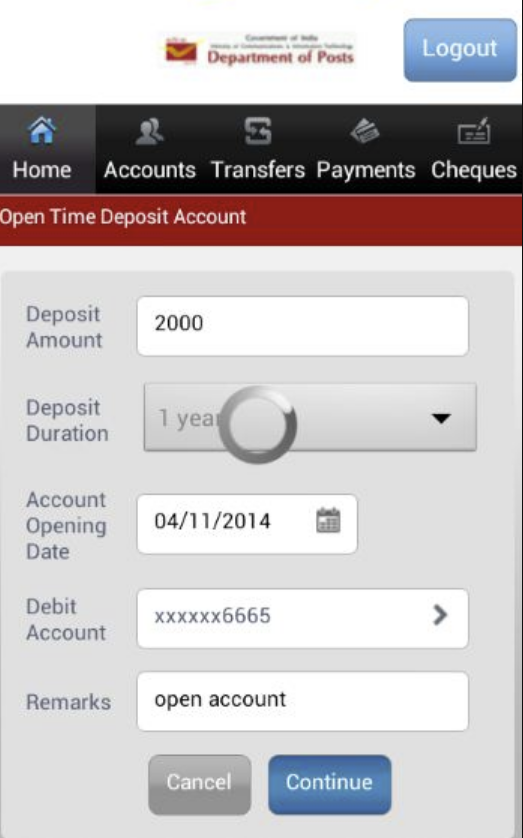 The India Post Mobile Banking App provides a simpler and convenient way to handle all the accounts with a safe and secure banking process. All eligible users as per above criteria can register for the India Post Mobile Banking at any CBS head or sub-post office but not in the branch offices. The savings account holder has to submit the duly-filled application form (Post office savings bank (POSB) ATM card/Mobile/Internet/SMS banking service request form) available with the post office. The KYC of the said account holder to be completed. If the KYC process is not completed, then the user has to undergo the KYC process at the time of submitting their request application form. The application form to be submitted only in the CBS post office where the savings bank account is held. Once the form is submitted at the branch, the user mobile banking facility will be enabled after 24 hours.Account Activation Process