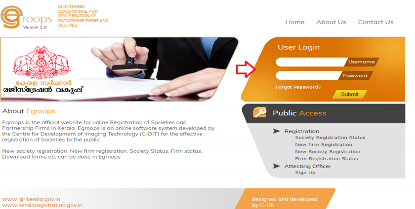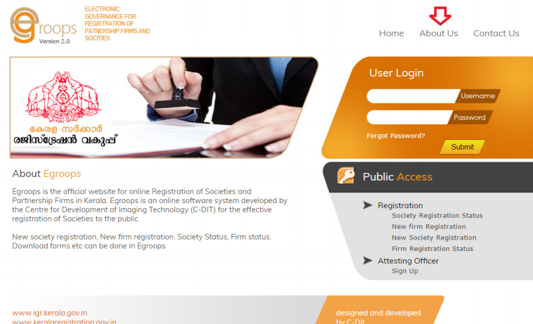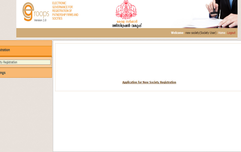 Step 1: The applicant has to go the official site of Egroops online portal Kerala to apply for the Society Registration.