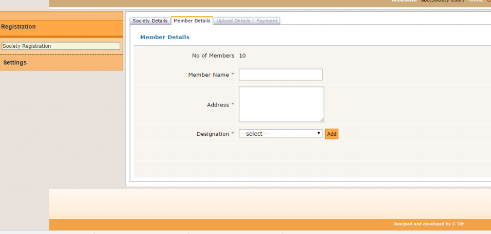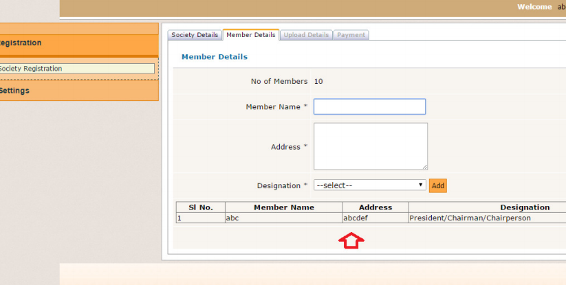 Step 13: Now you have to add a name, address and designation of the member in the newly formed society on using the Add button.
