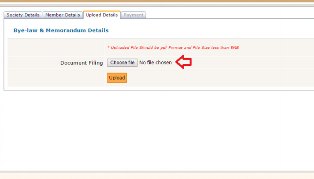 Step 15: You have to upload Bye-law and Memorandum of the Society only in PDF format (maximum file size 5 MB).