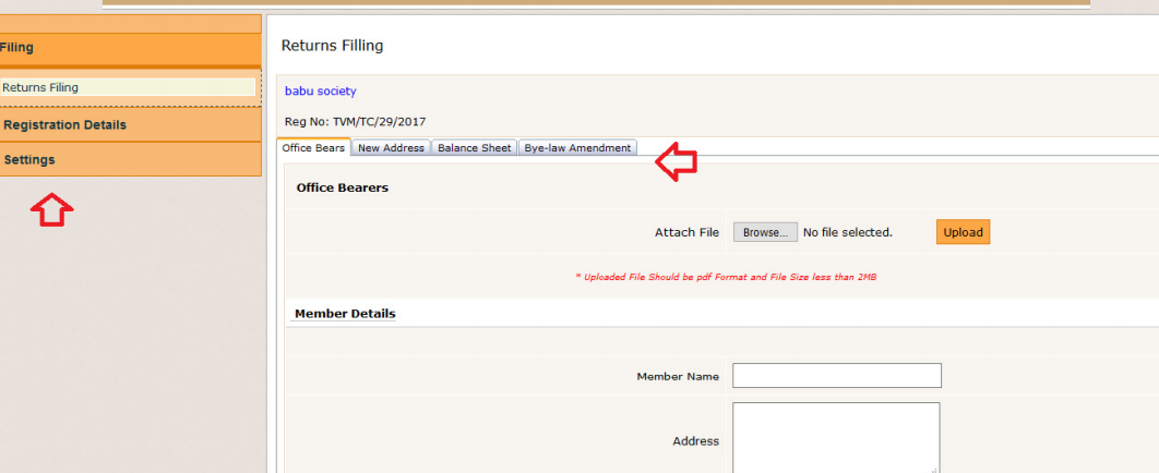 Step 3: In this page, you can upload the office bearers details by clicking on the âbrowseâ button (Uploaded file to be in PDF format with size below 2 MB)