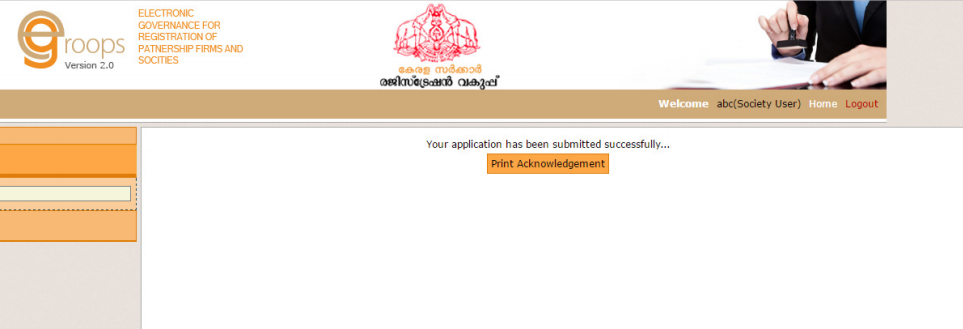 Application status - Kerala Society Registration