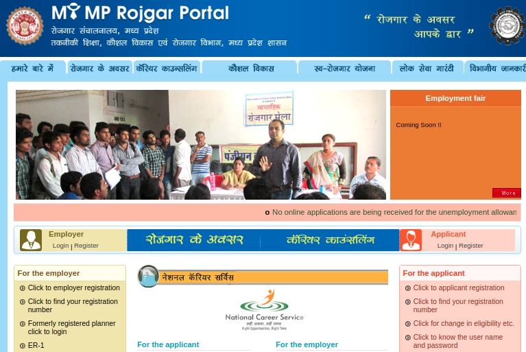 Before applying for the MP unemployment allowance scheme, the applicant has to register their name on the employment bank, follow the below steps to get registered online.