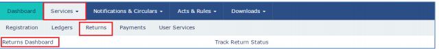 Follow the procedure explained below to download GSTR-2 Return File from GST Portal: Step 1: Log in using your user credentials to download the GSTR-2 return file from the GST portal. Step 2: Select the Returns option from the Service tab after logging into the portal. Click on the Returns Dashboard option. The file return page appears.