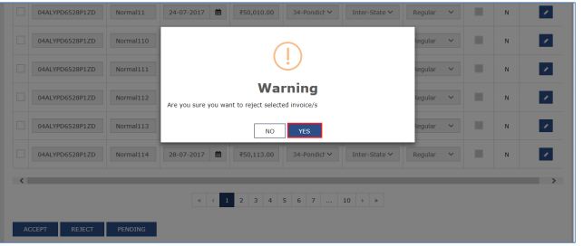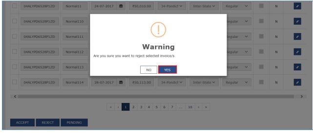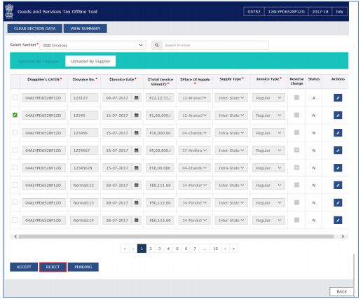 Step 1: To reject the invoice, select the checkbox against the invoice and click on the Reject option.