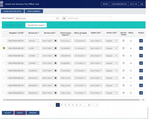 Step 1: To keep the invoices pending in the GST return offline file, select the checkbox against the invoice and click the Pending option.