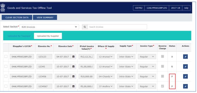Step 3: After successfully submitting the invoice details, the status will change to βPβ from βN.β