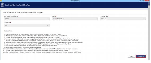 Step 12: You can view the details of the file downloaded from the GST Portal. Click on the Proceed option.