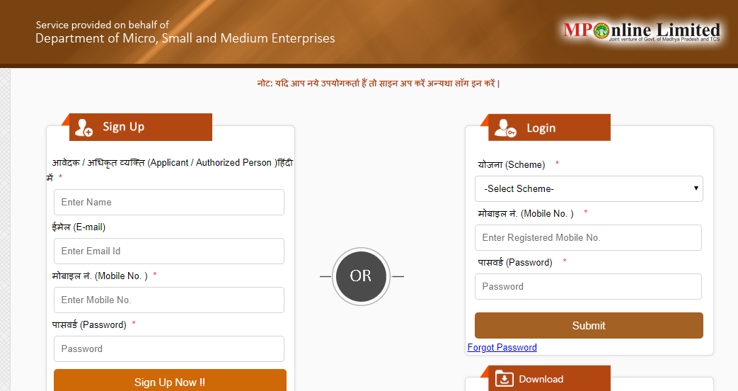 Step 1: The applicant can apply online by visiting the official website of MSME, Madhya Pradesh. Step 2: The candidate should register in case of being a new user. The candidate can directly login if registered already by selecting the scheme from the drop-down list.
