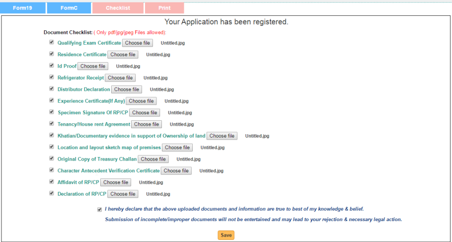 Step 17: After uploading all the documents, have to check the button of Declaration and have to click on the âSaveâ button.