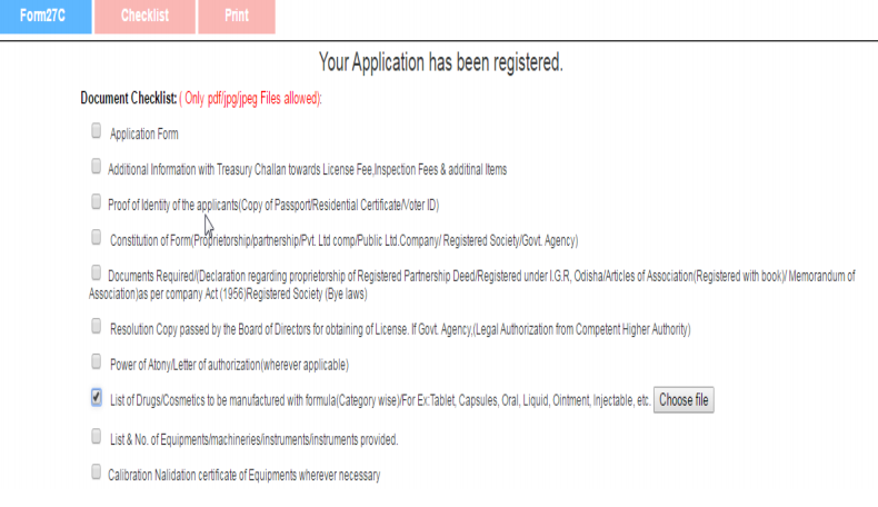 The below listed are the documents to be uploaded by the applicant while applying for the Retail, Wholesale Drug License and Manufacturer License.