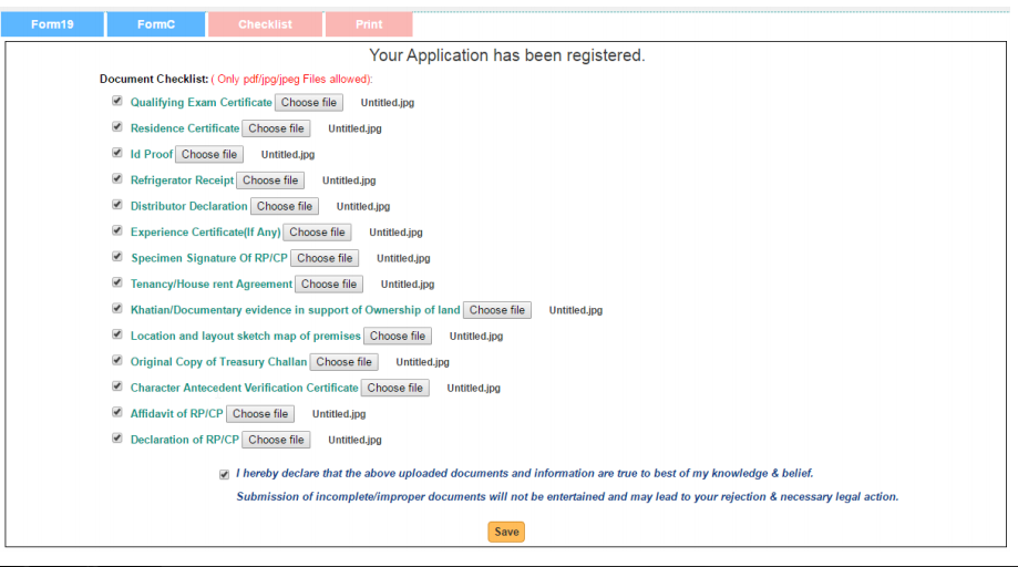 Step 27: After uploading all the documents, have to check the button of Declaration and have to click on the âSaveâ button.