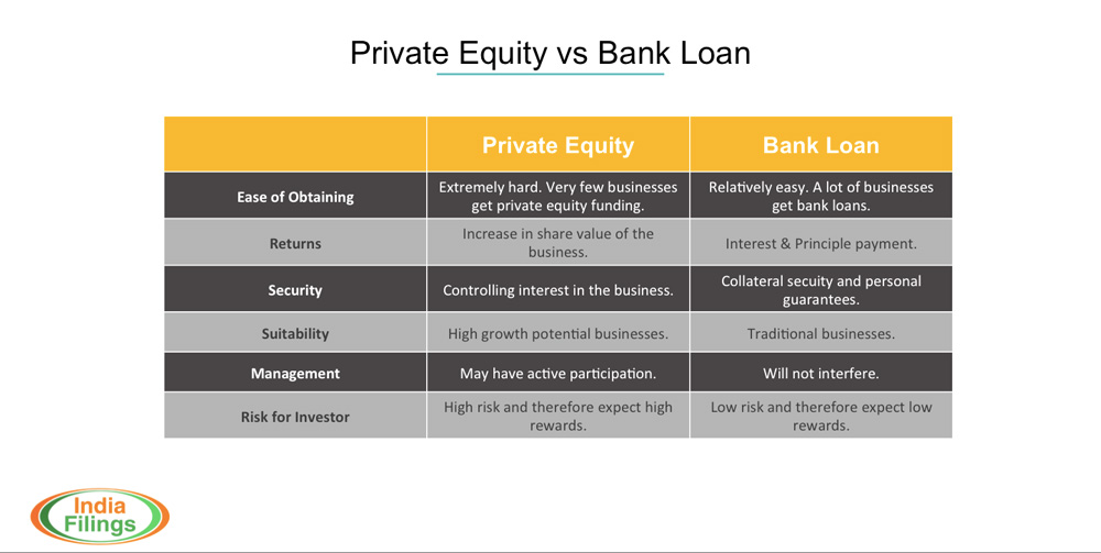 Starting a business and growing requires money, and raising the right kind of capital is essential. Bank loans have helped build many of the traditional businesses in India. Private equity and venture capital are today becoming increasing popular and are helping build many of the high-growth potential companies. Based on the vision the promoter has for the company, choosing the right kind of capital is essential. In this article we compare Private Equity vs Bank Loan in India.
