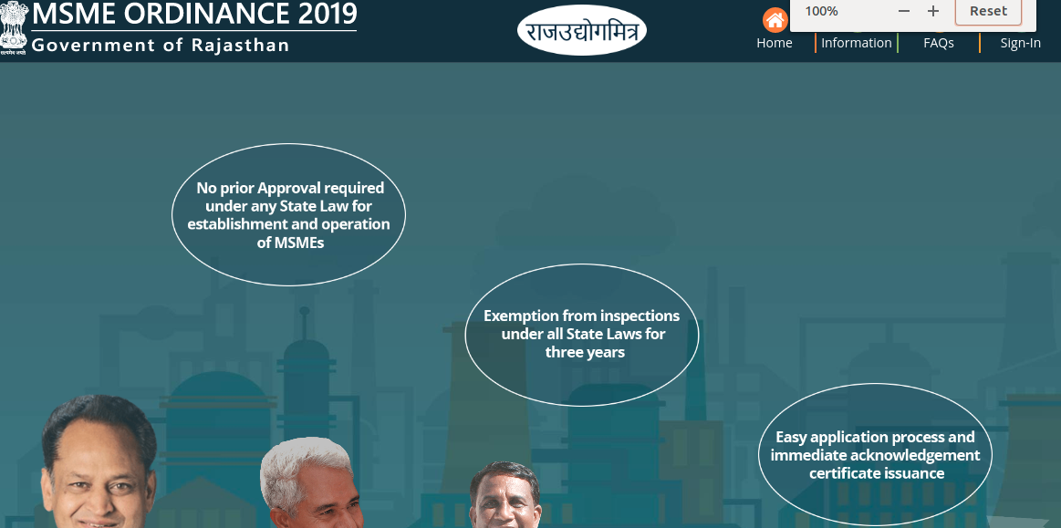 Step 1: The applicant must go to Raj Udyog Mitra's official portal for registration under the MSME Ordinance.