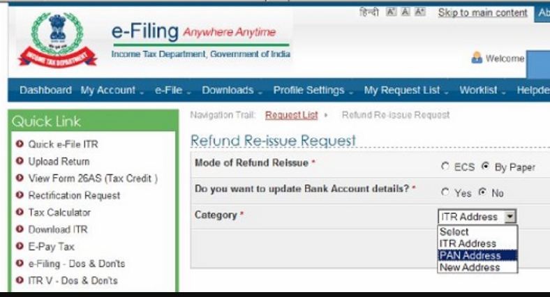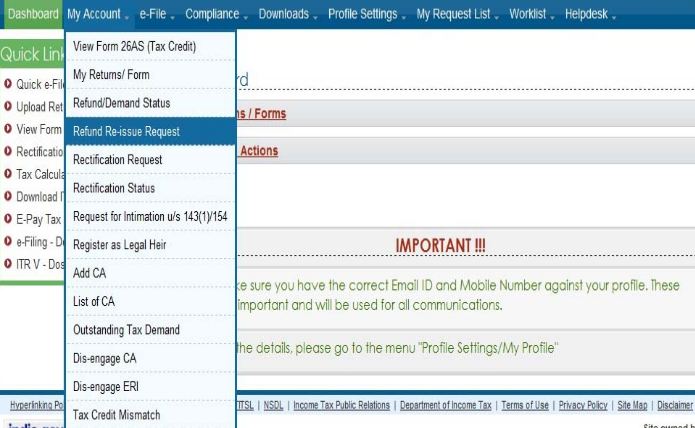 In such a case, a taxpayer is required to submit 'refund re-issue request' on the e-filing portal. |