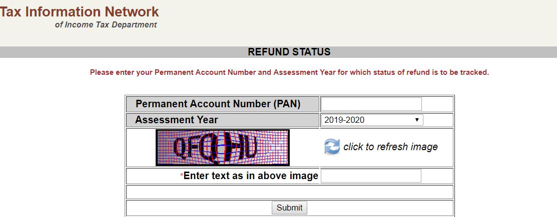 One can verify the status of the income tax refund on the TIN NSDL official website as well. Refund status is available on the website for 10 days after the department has sent the refund to the bank. To view the Refund/Demand Status, please follow the below-given steps: Step 1: Log in to e-Filing website with a User ID, Password, Date of Birth /Date of Incorporation and Captcha. Step 2: Go to My Account and click on “Refund/Demand Status”.