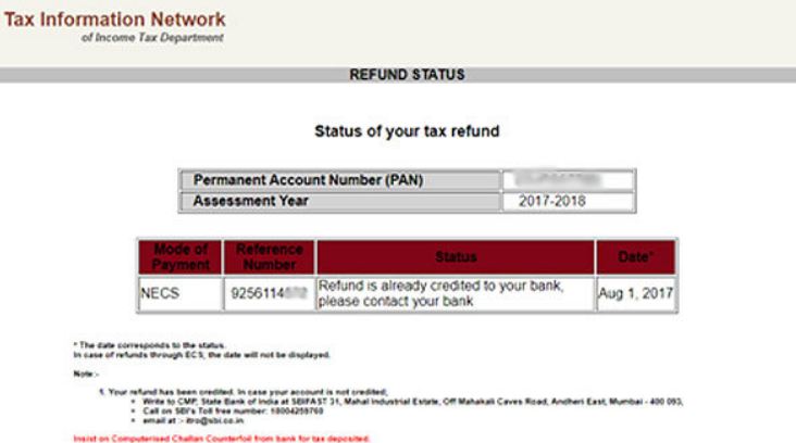 | 4. | Refund Status - Refund processed through NEFT/NECS but failed: It means that the refund processed through NECS/NEFT mode had failed. | In this case, a taxpayer should verify the account number, account description, MICR/IFSC code given at the time of filing of the return. |