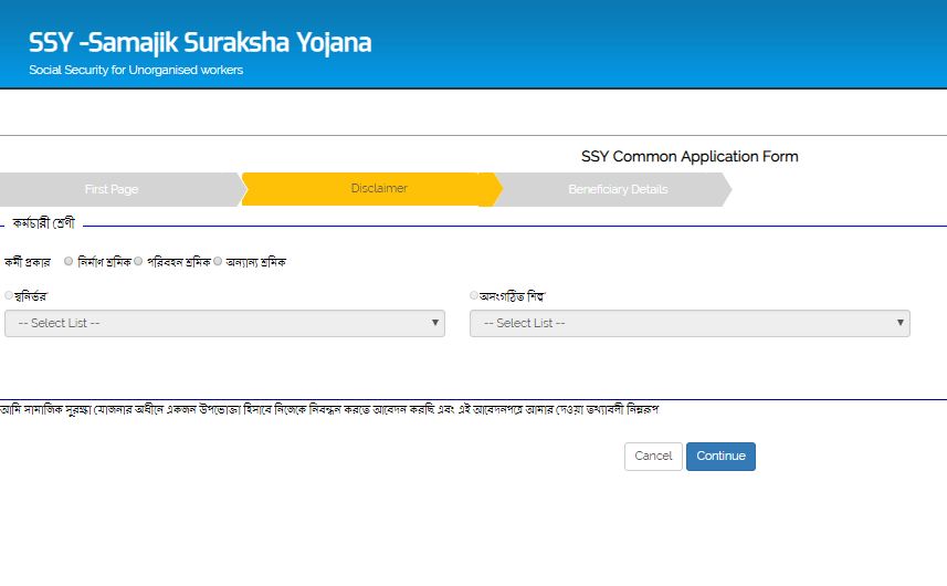 The Scheme has laid down the procedure to register by making an application in Form – I to the Inspectors under the Labour Commissionerate or any other Officer authorised by the Labour Commissioner. The applicants have to follow the below following procedures to apply for the Samajik Suraksha Scheme.