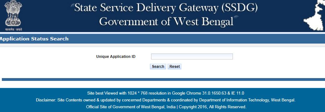 official website of West Bengal and click on the “Track Application Status” option on the home page. Then enter the application number and click on the "Search" button. Finally, the Status of your application will be displayed on the screen.
