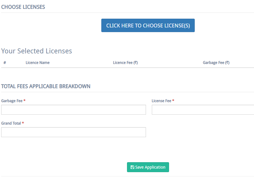 Step 11: Fill in the details further in the application form and upload the requisite/necessary documents that are specified above.Choose Licenses
