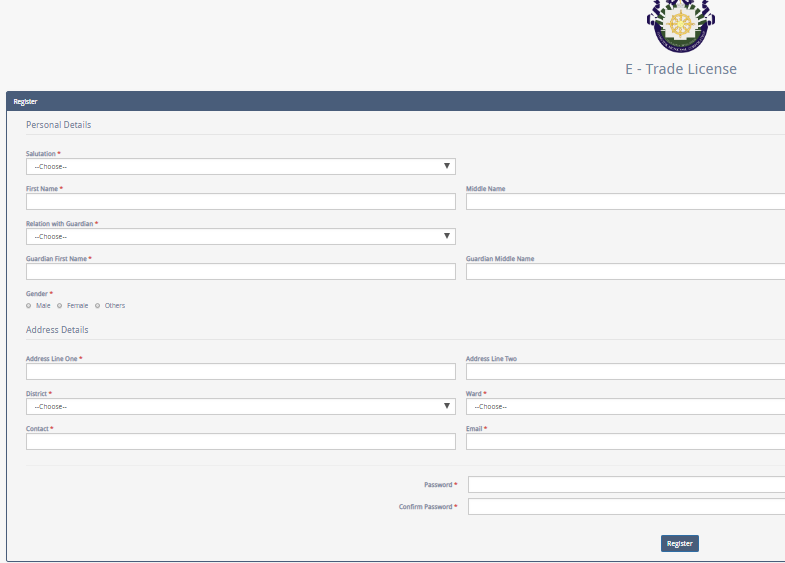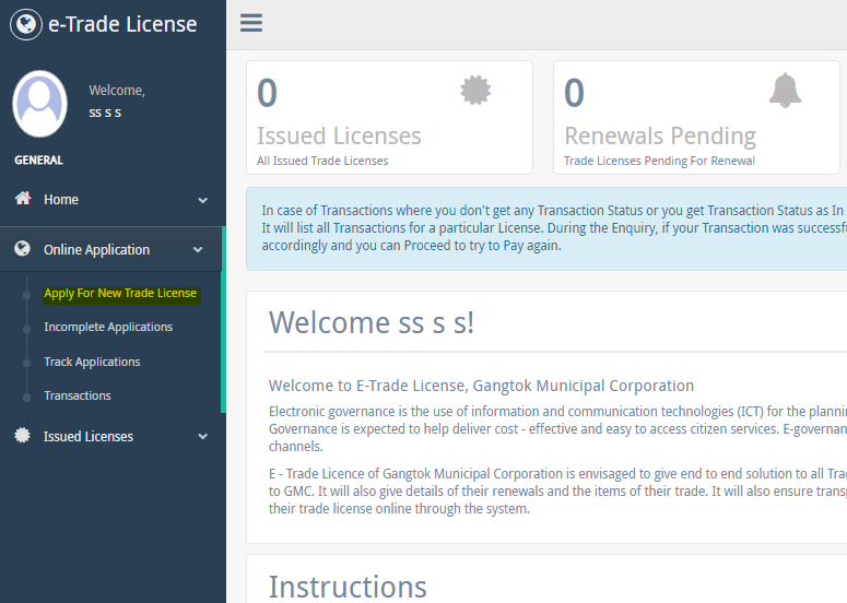 Step 1: Applicants will have to visit the official Gangtok Municipal Corporation (GMC) to apply for obtaining trade license through the portal. Step 2: After which, you must click on the âTrade Licenseâ options tab that is visible on the home page.New User Registration page