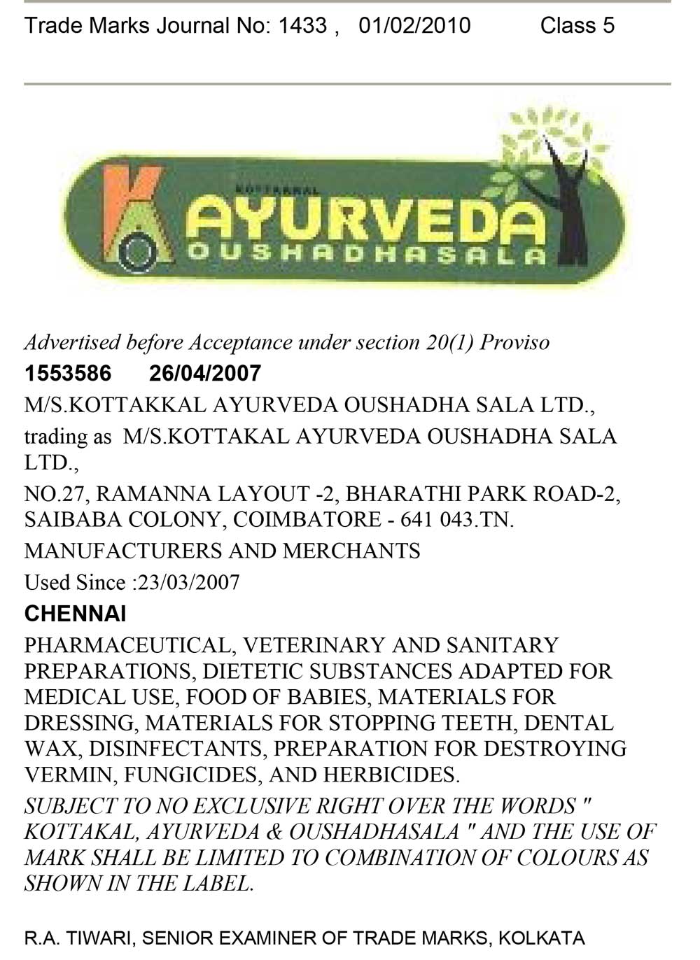 - Trade Mark applications which are accepted or ordered to be advertised before acceptance