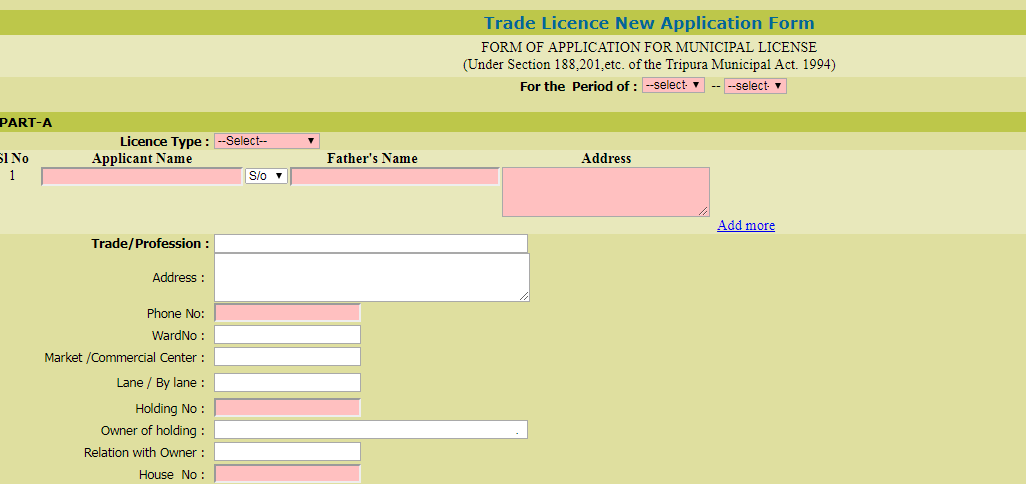 In Tripura, the applicants must follow the following steps to apply for trade license by submitting the application form online.