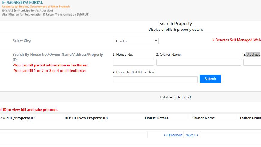 Step 5: Now you can search for the property by entering the following details such as City, house number, owner name, and address. Then you need to enter the property ID and click on the submit button.